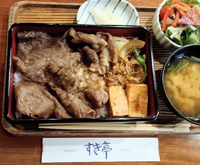 「リンゴで育てた信州牛」のすきやき重。なんと柔らか。口の中で溶けていきます。