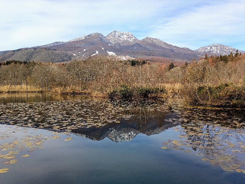 いよいよ冬到来。 山には雪もちらほら。 冬に向けて増えているケガ。冬囲いで脚立から転落して骨折や打撲。剪定作業後の手首や肘の腱鞘炎。 大掃除で窓や屋根に上ってのケガ。 タイヤ交換での腰痛。などなど・・・ 大根・白菜~漬物を漬けての腕・肩や腰の痛みは毎年来られますが、今年は栗や柿を(たくさんもらって)皮むきしてからの手・腕の痛みの方が多かった気がします。 雪国ならではのケガや病気ですね~。 これから冬本番。雪が少ないといいですね! 勤労感謝の今日、いもり池にきれいな妙高山が映っていました。